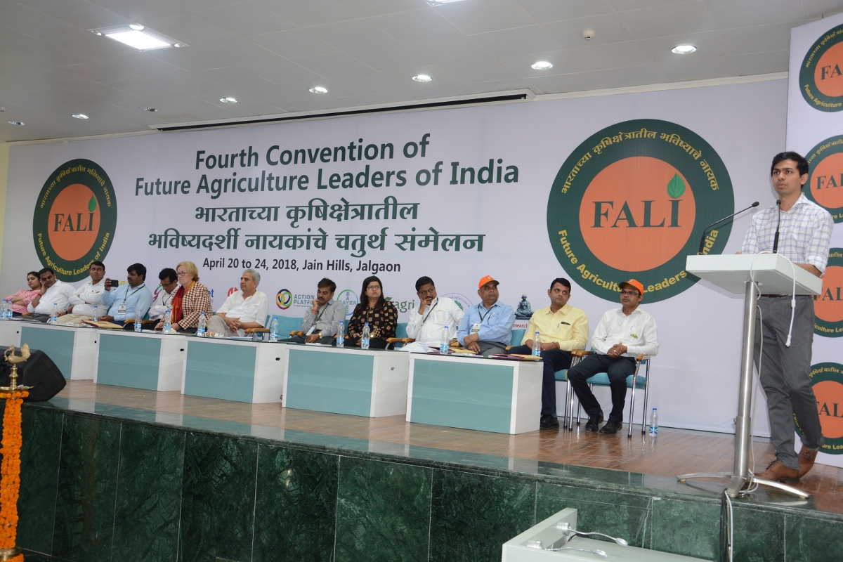 Fourth convention of agricultural leaders of India 'FALI-2018' organized by Jain Irrigation Systems Ltd. and Nancy Berry Foundation's Action Platform ended yesterday. In the second phase, orange gradation machine presented by New English Higher Secondary School Amravati's students came first in innovative contest. In the Agri-Business Plan contest, Satara's Maharaja Sahajirao School students' vermicompost production plan came first. Out of 6150 students from 75 schools in Maharashtra and Gujarat, 525 students were selected.