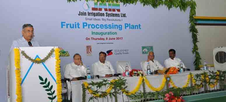 Farmers of Tamilnadu are leading in implementing high technology agriculture. Jain Irrigation is committed to add value to the fruits and vegetables harvested by these farmers, Mr Ashok Jain, Chairman, Jain Irrigation Systems Ltd reiterated here. He was speaking to the farmers after the formal inauguration of fruit and vegetables processing project at Elayamuthur, Udumalpet today (June 8).