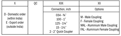 • ¾", 1", 1¼", 1½", are available with provision of quick closure valve.