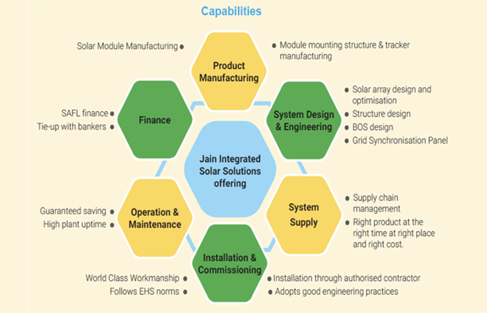 Jain Irrigation Systems Ltd. is India’s largest vertically integrated solar EPC company with well established solar value chain right from solar module, appliances, structure manufacturing to executing roof top and utility scale solar projects.